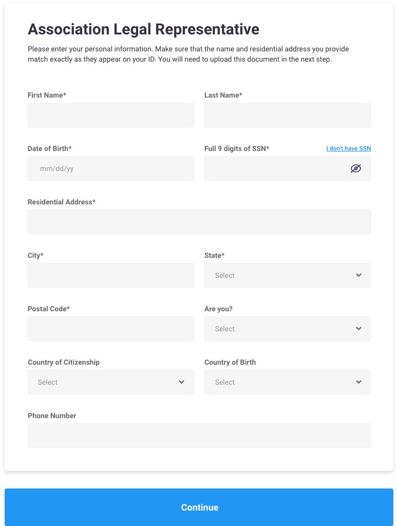 Our banking partners must comply with federal Know Your Customer (KYC) regulations before opening the two bank accounts that will hold your association’s funds. An SSN is the quickest, most reliable way to meet that legal requirement—every U.S. bank asks for it in the same situation.